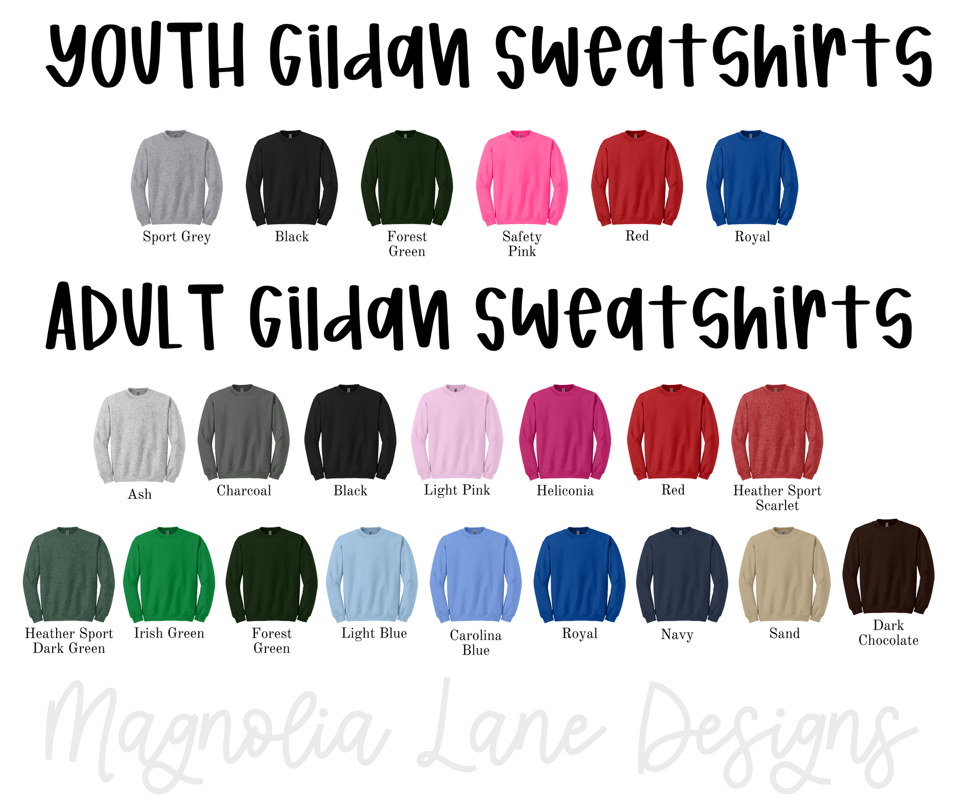 These colors are not available in a sweatshirt. If you would like a sweatshirt, look at the "Gildan Sweatshirts" chart and let me know what color you would like in the notes section at checkout.